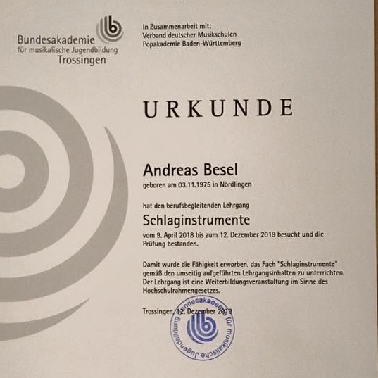 Im Januar 2020 wurde mir vom Gutachterausschuss des Tonkünstlerverbands Bayern e.V. und des Verbands bayerischer Sing- und Musikschulen e.V.